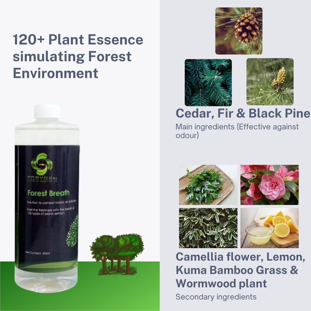 Consists of aromatic carbon compound (Terpene) & 120+ types of plant essence simulating FOREST ENVIRONMENT